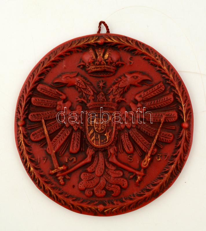 Beschreibung: 18. századi osztrák uralkodói nagypecsét modern replikája, viasz, feliratozva, d: 19 cm