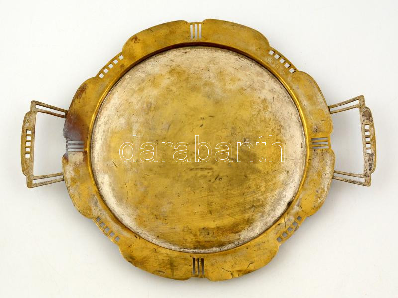 Beschreibung: Art deco tálca, rezezett alpakka, jelzett, apró horpadásokkal, karcolásokkal, 43×33 cm