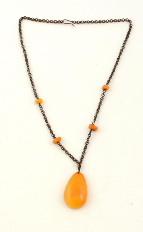 Bizsu nyaklánc borostyán medállal és gyöngyökkel, h: 53 cm https://www.darabanth.com/de/283-Fernauktion/283.0/Andere-Sammelgebiete/Flohmarkt~12/Bizsu-nyaklanc-borostyan-medallal-es-gyongyokkel-h-53-cm~II1470541