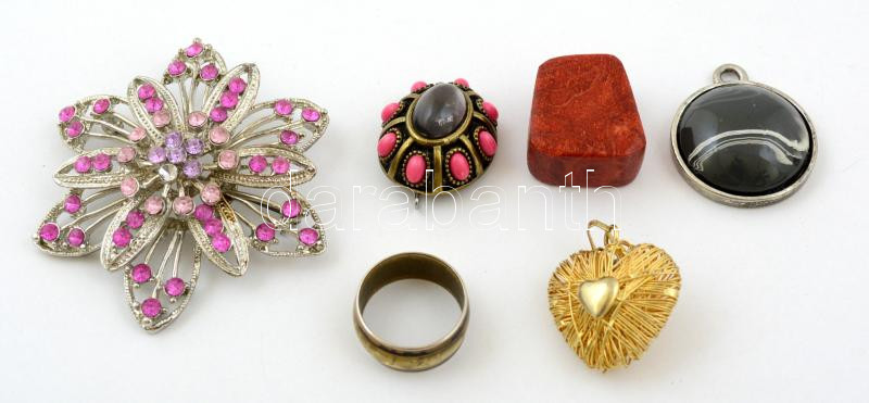Beschreibung: Bizsu tétel: gyűrű, melltű, medálok, összesen:6 db