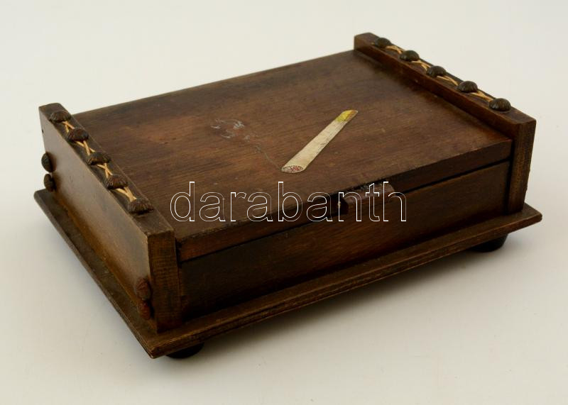 Cigarettatartó fa doboz, jó állapotban, 16x12x6 cm https://www.darabanth.com/de/283-Fernauktion/283.0/Andere-Sammelgebiete/Flohmarkt~12/Cigarettatarto-fa-doboz-jo-allapotban-16x12x6-cm~II1467662
