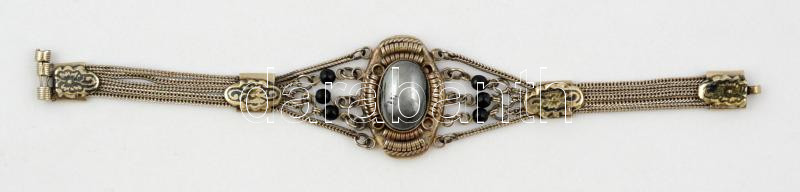 Beschreibung: Ezüstözött bizsu karkötő, hematittal díszítve, h: 17 cm