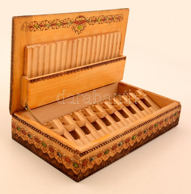 Festett, faragott fa kínálós cigarettatartó doboz, 20x12x4,5 cm https://www.darabanth.com/de/283-Fernauktion/283.0/Andere-Sammelgebiete/Flohmarkt~12/Festett-faragott-fa-kinalos-cigarettatarto-doboz-20x12x4-5-cm~II1422356