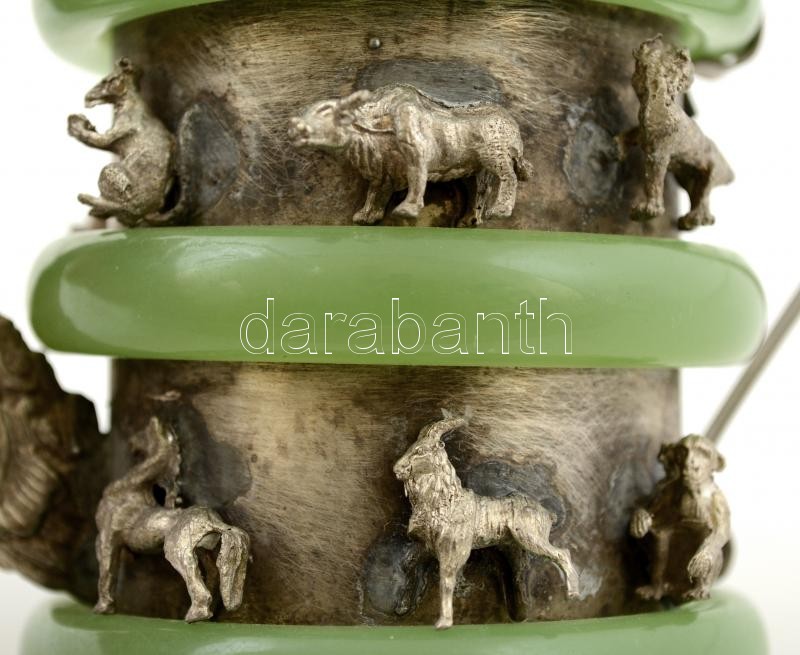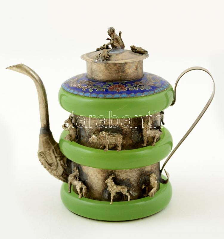 Jádéval és rekeszzománccal díszített fém teáskanna, tetején apró majom... https://www.darabanth.com/de/283-Fernauktion/283.0/Andere-Sammelgebiete/Flohmarkt~12/Jadeval-es-rekeszzomanccal-diszitett-fem-teaskanna-tetejen-apro-majomfiguraval-m-12-cm~II1462694