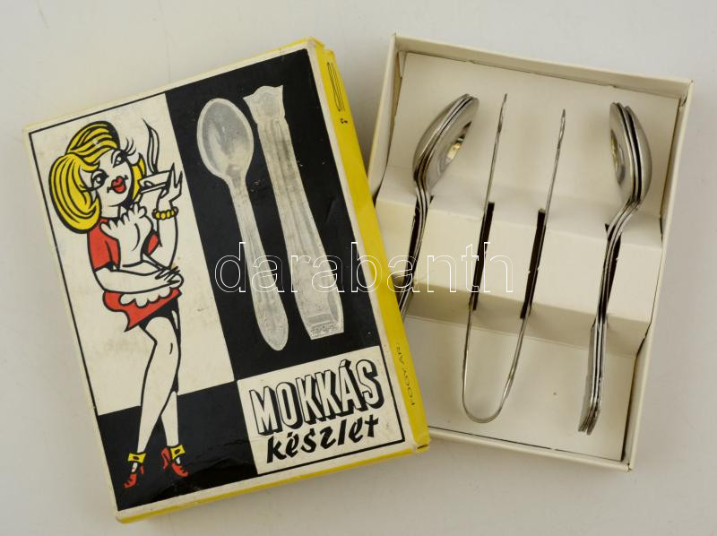 Mokkás készlet, kiskanalakkal és cukorcsipesszel, rozsdamentes, eredet... https://www.darabanth.com/de/283-Fernauktion/283.0/Andere-Sammelgebiete/Flohmarkt~12/Mokkas-keszlet-kiskanalakkal-es-cukorcsipesszel-rozsdamentes-eredeti-dobozaban~II1465337