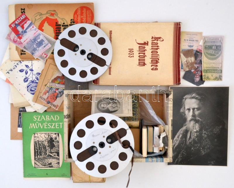 Nagy vegyes hagyaték tétel. benne iratok, könyvek, nyomtatványok, 8 mm... https://www.darabanth.com/de/283-Fernauktion/283.0/Andere-Sammelgebiete/Flohmarkt~12/Nagy-vegyes-hagyatek-tetel-benne-iratok-konyvek-nyomtatvanyok-8-mm-es-filmtekercs~II1470466