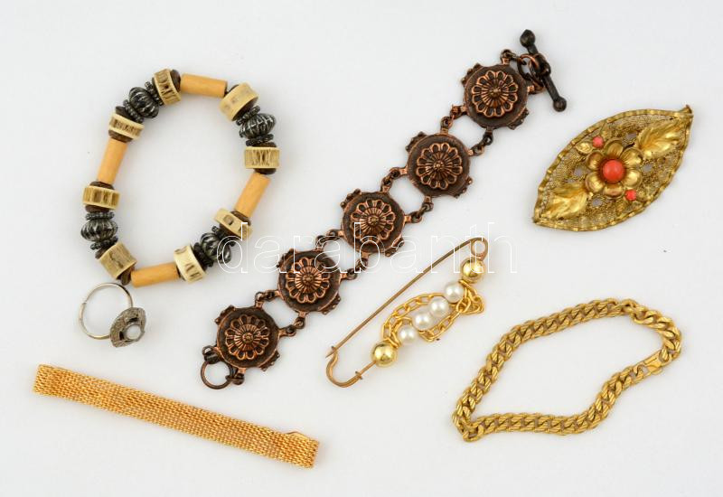 Beschreibung: Vegyes bizsu tétel, gyűrű, bross, karkötő, stb., 7 db