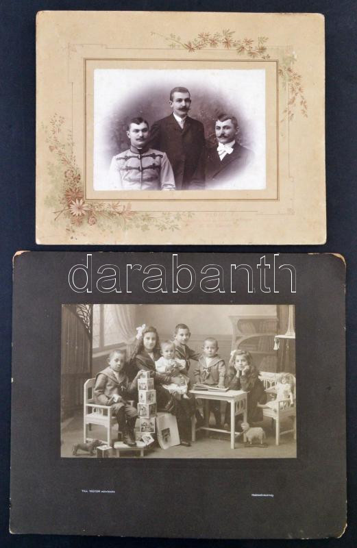 Beschreibung: 1897-1910 2 db családi fotó, hódmezővásárhelyi műtermekből, kartonra ragasztva, különböző méretben