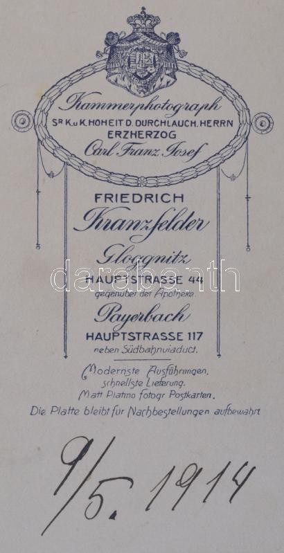 1914 Kisgyerek portréja, keményhátú fotó Kranzfelder műterméből (Glog... https://www.darabanth.com/de/283-Fernauktion/283.0/Andere-Sammelgebiete/Foto~20/1914-Kisgyerek-portreja-kemenyhatu-foto-Kranzfelder-mutermebol-GloggnitzPayerbach-16-5~II1469724