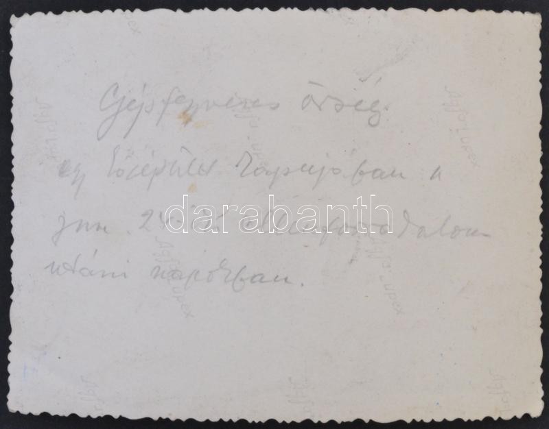Beschreibung: 1919 Budapest, gépfegyveres őrség egy középület kapujában a június 24-i ellenforradalom utáni napokban 8.5×11.5 cm (saroktöréssel)