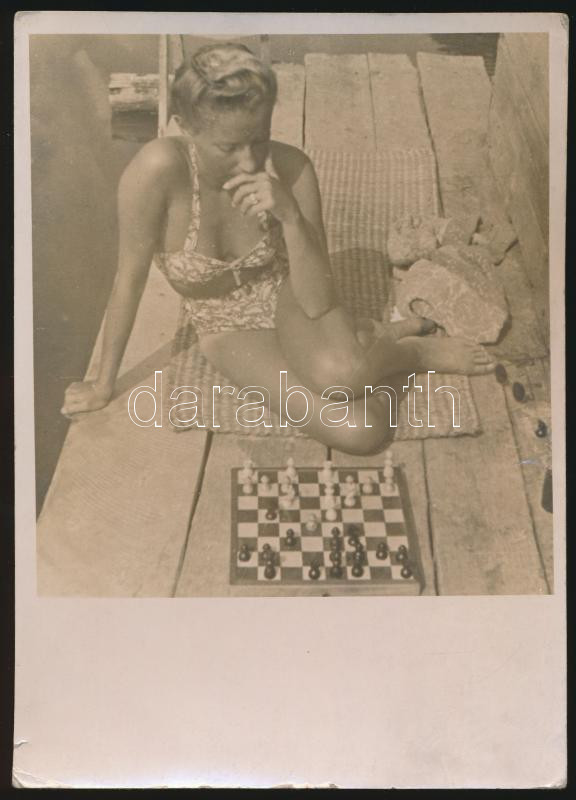 1935 Balaton, Sakkozó hölgy a stégen, jelzetlen fotó, 18x13 cm https://www.darabanth.com/de/283-Fernauktion/283.0/Andere-Sammelgebiete/Foto~20/1935-Balaton-Sakkozo-holgy-a-stegen-jelzetlen-foto-18x13-cm~II1471716