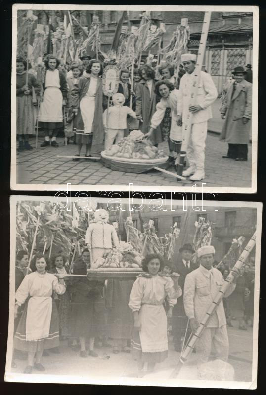 Beschreibung: 1956 Május 1-jei felvonulás, mirelit, 2 db fotó, hátuljukon feliratozva, 9×12 cm