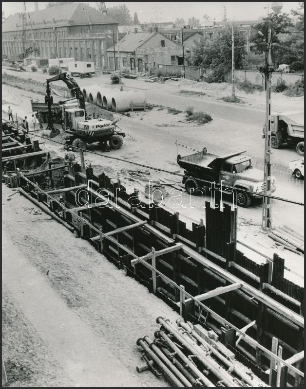 Beschreibung: 1975 Budapest, Újpest, a metró építés előkészítése, vintage fotó, 22,5x17,5 cm