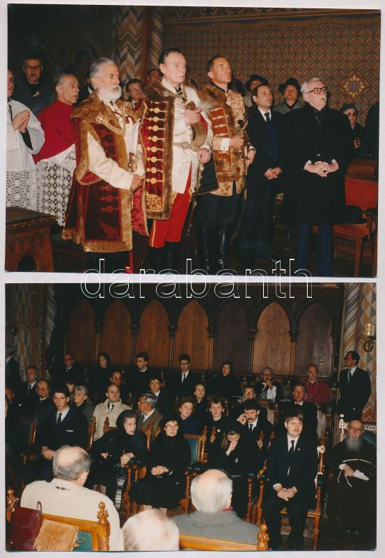 1989 Habsburg Zita királyné temetése, a jelenlevők közt számos magyar előkelőséggel, politikussal. 2 db fotó / Das Begräbnis von Kaiserin Zita in Wien, 2 Fotos, 13×18 cm