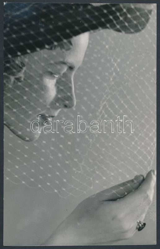 Beschreibung: Balogh Rudolf (1879-1944): Hölgy hálóban, jelzetlen fotó, 16,5x10,5 cm