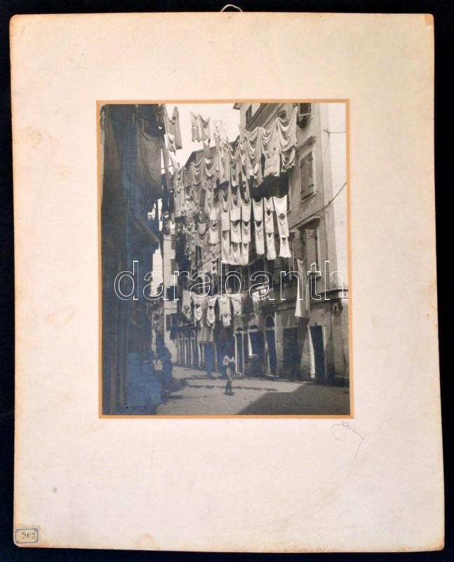 Beschreibung: Fried Oszkár: Korfui utca, jelzett, kiállításon szerepelt fotó, paszpartuban, 30x23 cm / Corfu, sreet, vitage photo, 30x23 cm