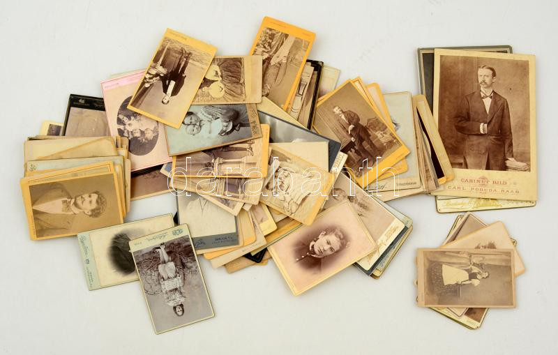 Beschreibung: cca 1860-1880 Kis magyar fotó tétel: portrék, csoportképek, stb., különböző műtermekből, különböző méretben, kb. 70 db