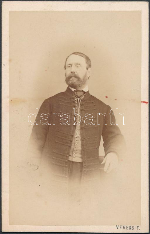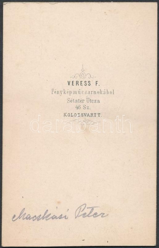 cca 1860 Macskási Péter vizitkártya méretű, feliratozott fényképe Veress Ferenc (1832-1916) kolozsvári fénykép műcsarnokából, a verebélyi Marzsó család fotó hagyatékából, 10x6,5 cm