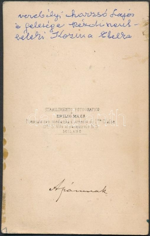 cca 1863 Kézdiszentléleki Kozma Zsombor vizitkártya méretű, feliratozott fényképe, Borsos és Doctor pesti műterméből, a verebélyi Marzsó család fotó hagyatékából, 10,5x6,5 cm
