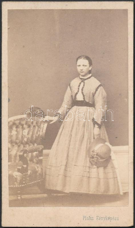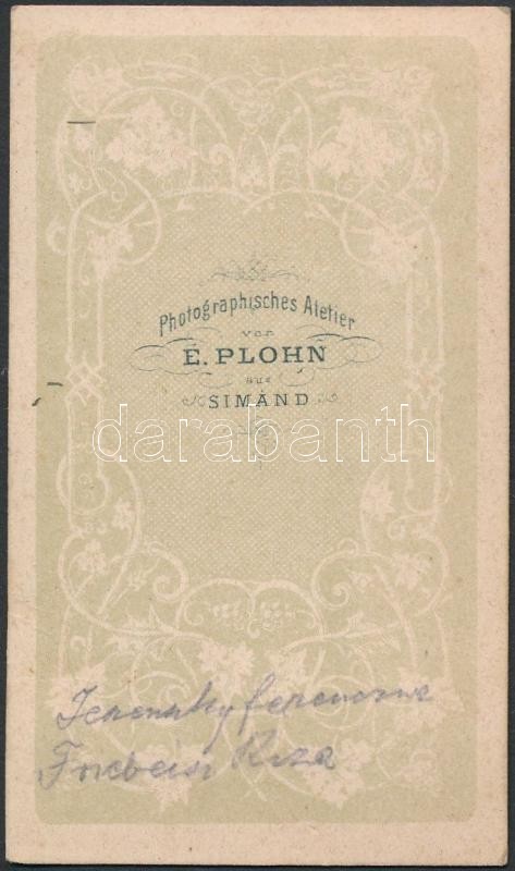 cca 1870 Friebeisz Róza - Jeszenszky Ferencné - vizitkártya méretű, feliratozott fényképe Plohn E. simándi műterméből, a verebélyi Marzsó család fotó hagyatékából, 10,5x6,5 cm