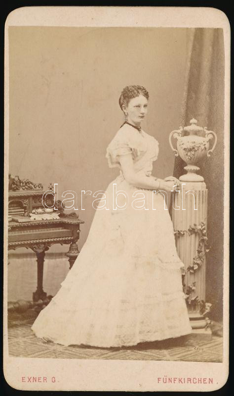 cca 1900 Hölgy egészalakos portréja, keményhátú fotó Exner Gyula pécsi... https://www.darabanth.com/de/283-Fernauktion/283.0/Andere-Sammelgebiete/Foto~20/cca-1900-Holgy-egeszalakos-portreja-kemenyhatu-foto-Exner-Gyula-pecsi-mutermebol-disze~II1466372