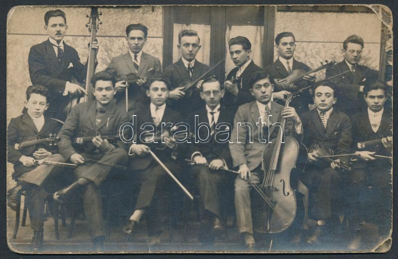 cca 1910-1920 Zenészek csoportképe, fotólap felületén törésnyomokkal, ... https://www.darabanth.com/de/283-Fernauktion/283.0/Andere-Sammelgebiete/Foto~20/cca-1910-1920-Zeneszek-csoportkepe-fotolap-feluleten-toresnyomokkal-9x14-cm~II1464030