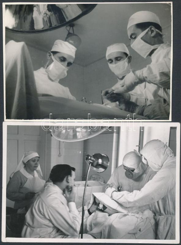 Beschreibung: cca 1955 Műtét, 2 db jelzés nélküli vintage fotó dr. Csörgeő Tibor (1896-1968) hagyatékából, 8,5x12 cm