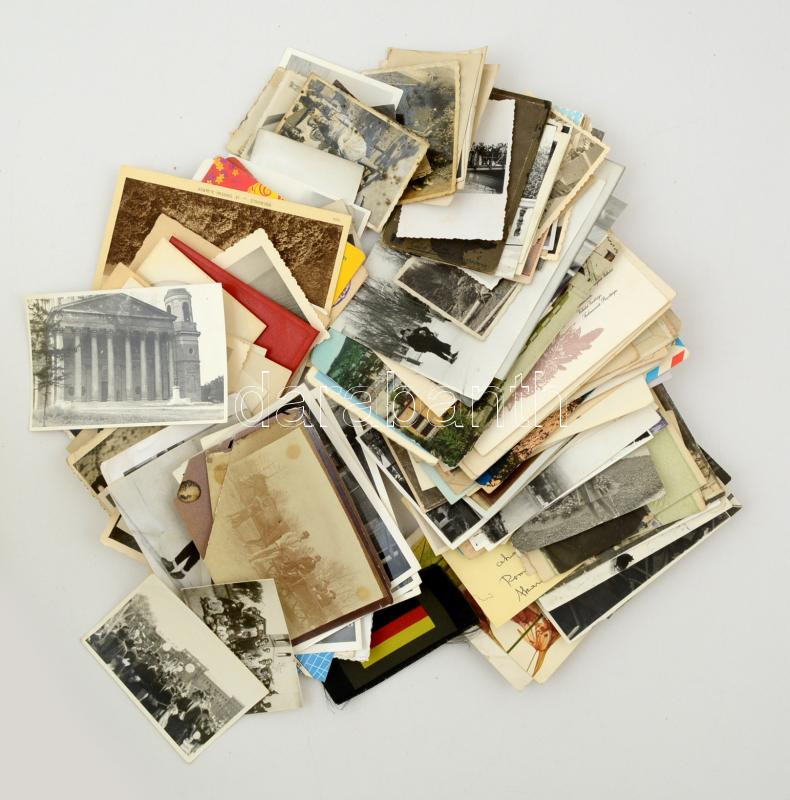 Beschreibung: cca 1960-1990 Vegyes fotó tétel, életképek, látképek, családi fotók vegyesen, köztük fotólapok és néhány aprónyomtatvány is, összesen kb. 100 db