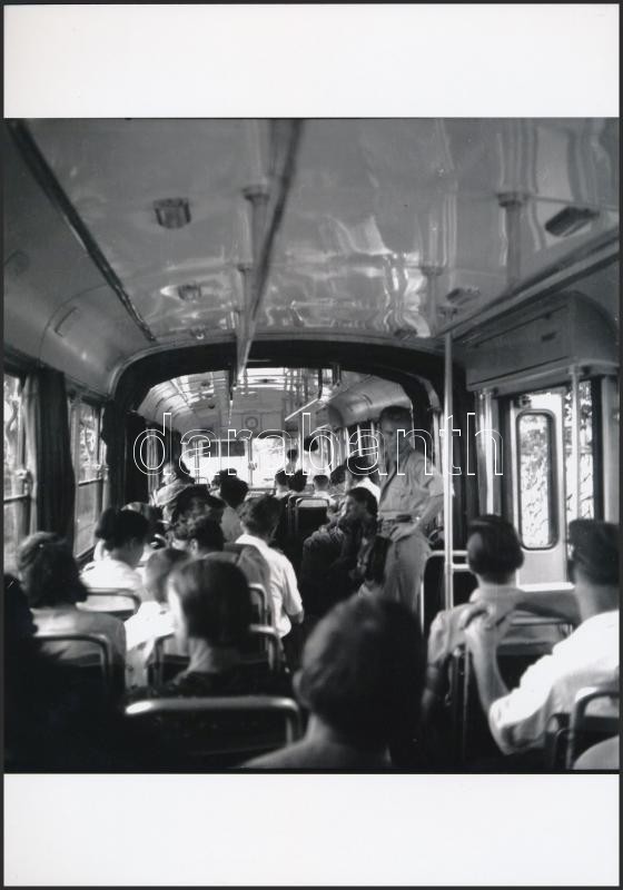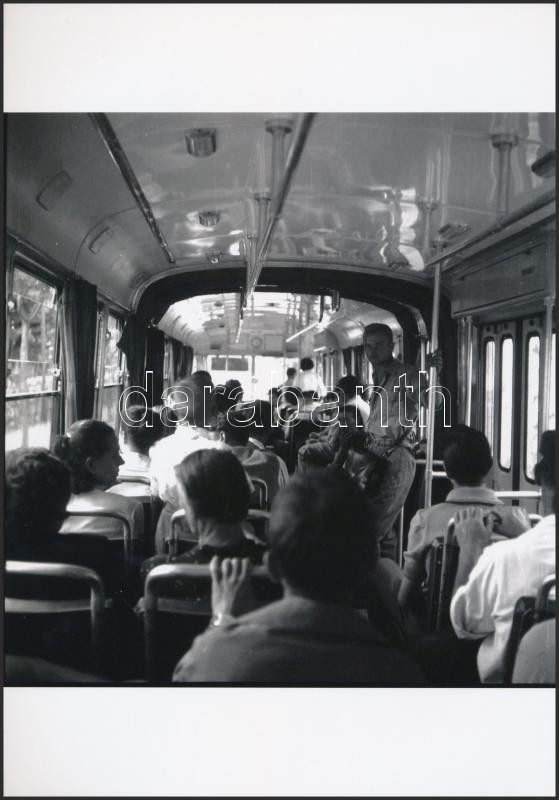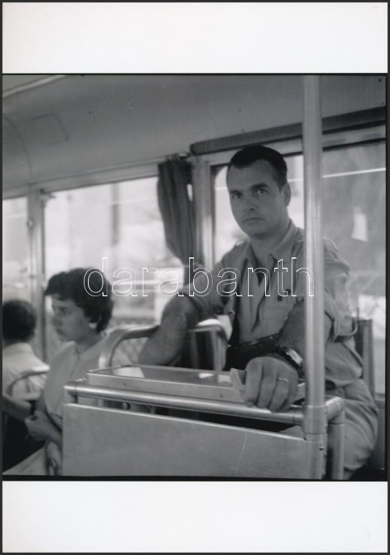 cca 1965 Budapest, kalauz a csuklós autóbuszon, Kotnyek Antal (1921-1990) fotóriporter hagyatékában őrzött 3 db vintage negatív mai nagyítása, 18x18 cm