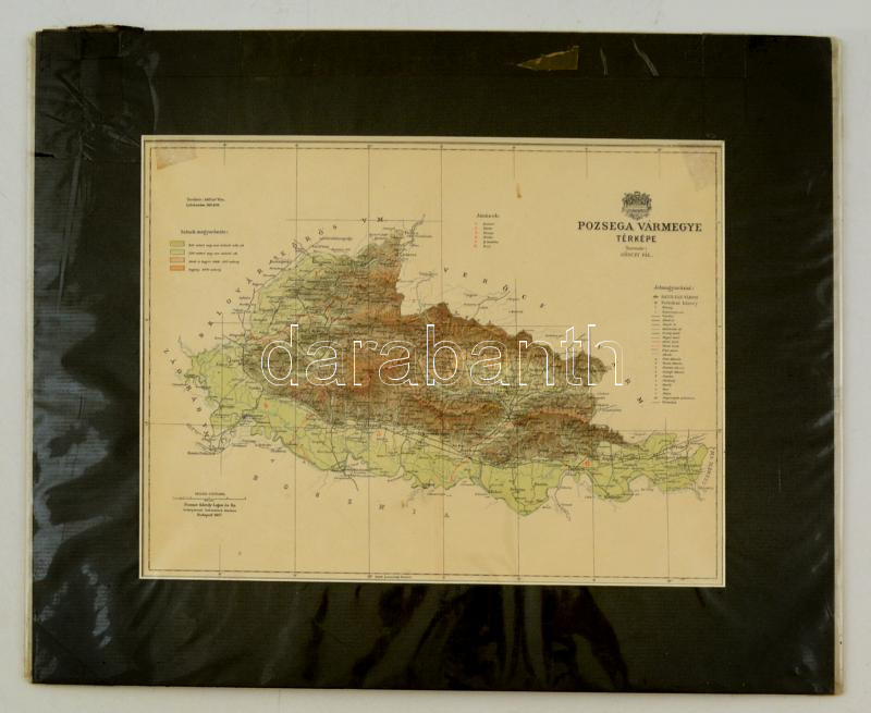 1897 Pozsega vármegye térképe. Tervezete: Gönczy Pál, Bp., Posner Károly Lajos és fia, paszpartuban, jó állapotban, 21x27 cm. 1897 Map of Pozsega (Požega/Poschega/Posega) county. planned by Pál Gönczy, in paspartu, in good condition, 21x27 cm.