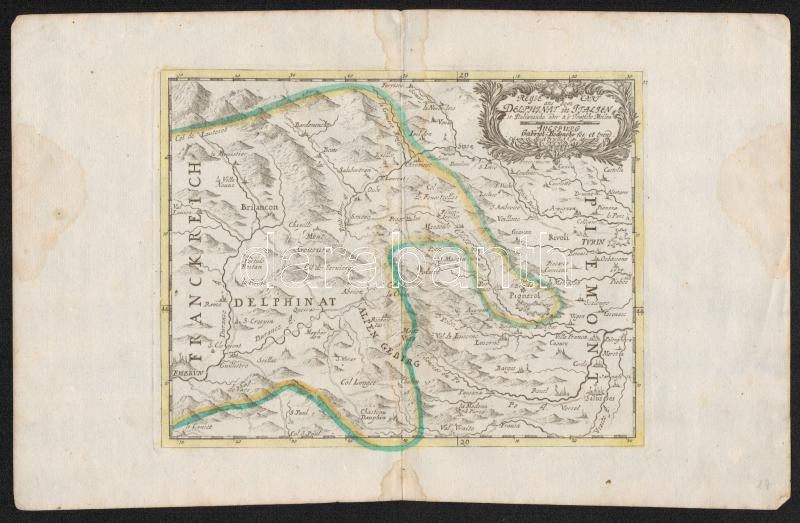 cca 1700 Johann Hofmann: Delphinat Olaszországban. Díszes kartusú, színezett rézmetszet. Megjelent: Atlas Curieux oder neuer und Compendieuser Atlas. (Augsburg, 1700?). Méret: 29x20 cm / cca 1700 Map of Delphinmat in Italy Colored etching 31x20 cm