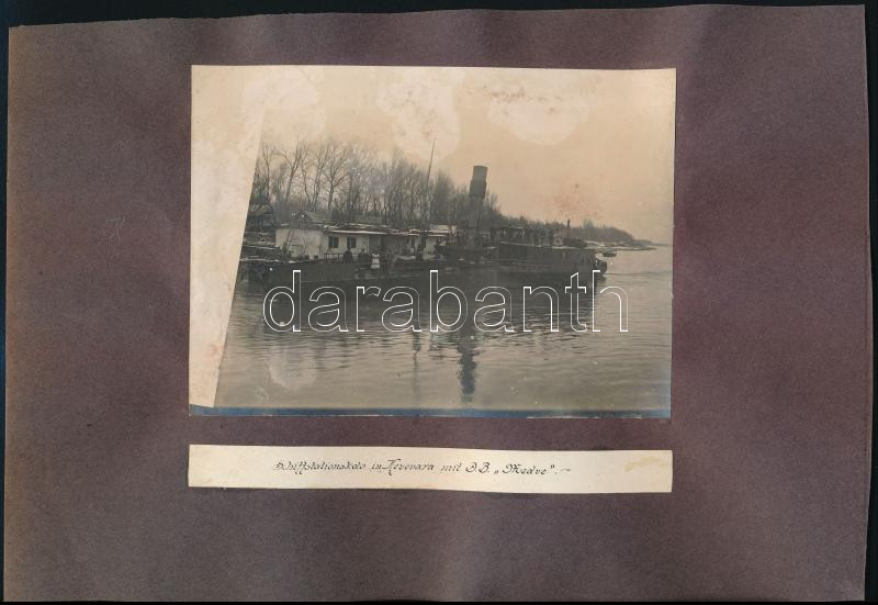 Beschreibung: cca 1916 A Medve gőzhajó és javítás alatt álló német katonai motorcsónak Kevevárán 2 fotó18x12 cm