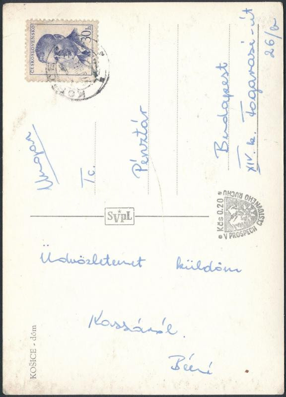 Beschreibung: cca 1960 Káposzta Benő (1942- ) újpesti labdarúgó aláírása és sorai egy Kassai képeslapon.