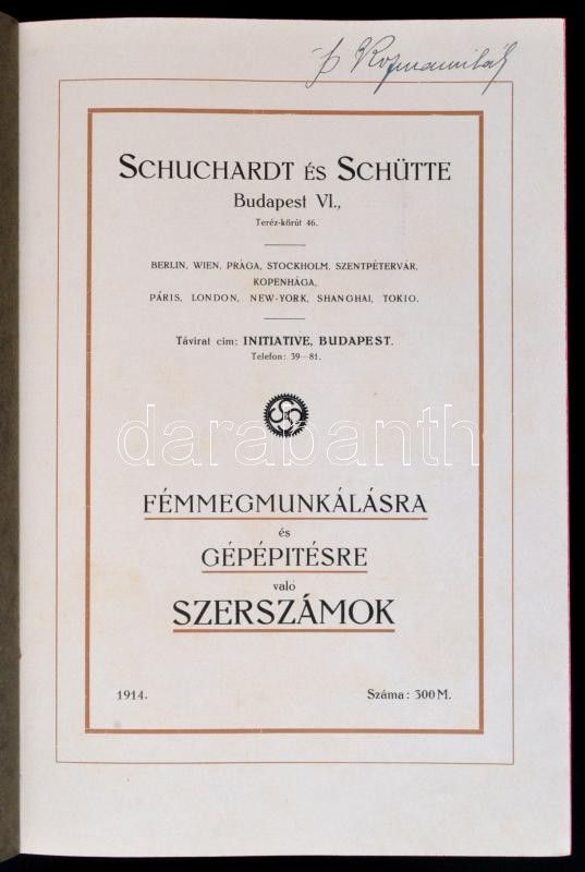 Beschreibung: 1914 Schuchardt és Schütte árujegyzék (fémmegmunkálásra és gépesítésre való szerszámok), kiadói félvászon kötésben, jó állapotban