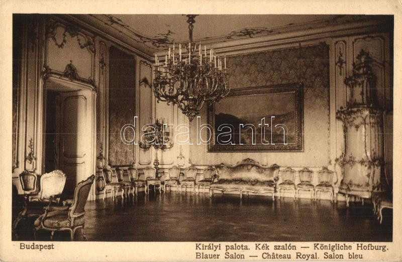 Budapest I. Királyi palota, Kék szalon, belső, Rigler kiadása (EK) https://www.darabanth.com/de/283-Fernauktion/283.0/Ansichtskarten/Ungarn~200005/Budapest-I-Kiralyi-palota-Kek-szalon-belso-Rigler-kiadasa-EK~II1471435