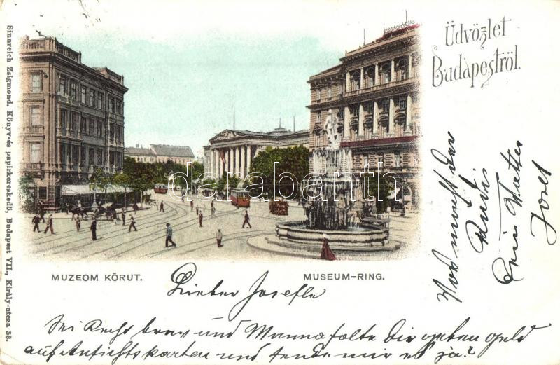 Budapest VIII. Múzeum Körút, villamosok; Sinreich Zsigmond kiadása https://www.darabanth.com/de/283-Fernauktion/283.0/Ansichtskarten/Ungarn~200005/Budapest-VIII-Muzeum-Korut-villamosok-Sinreich-Zsigmond-kiadasa~II1469428