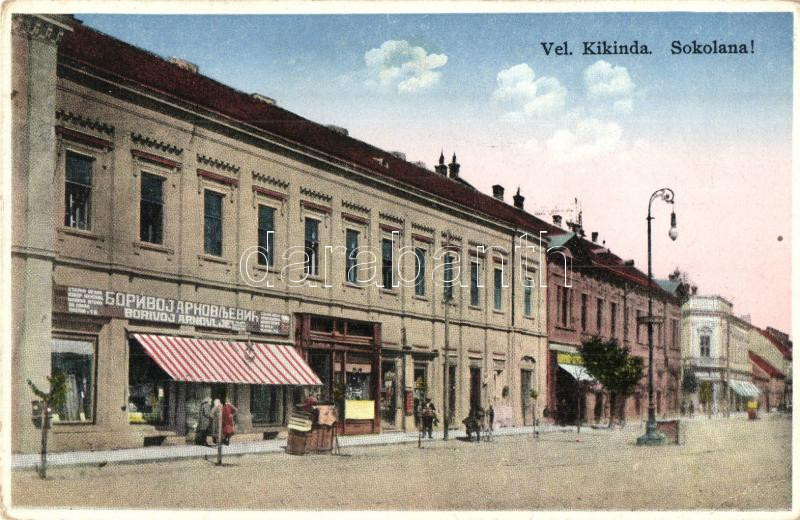 Nagykikinda, Kikinda; Sokolana, Borivoj Arnovljev üzlete / shop (EK) https://www.darabanth.com/de/283-Fernauktion/283.0/Ansichtskarten/Vojvodina~200010/Nagykikinda-Kikinda-Sokolana-Borivoj-Arnovljev-uzlete-shop-EK~II1470945