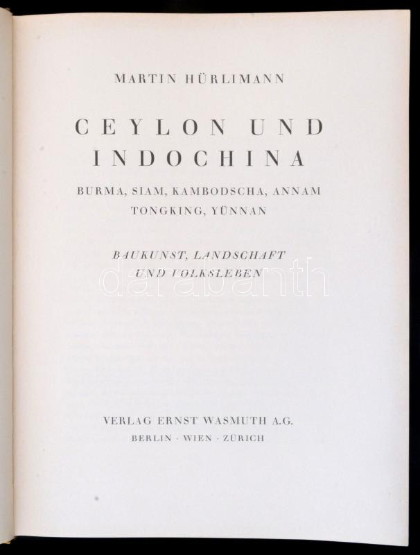 Hürlimann, Martin: Ceylon und Indochina. Burma, Siam, Kambodscha, Annam Tongking, Yünnan. Orbis Terrarum. Berlin - Wien - Zürich, 1929, Ernst Wasmuth A. G. Vászonkötésben, jó állapotban.