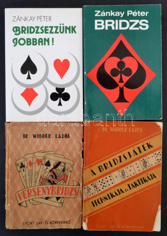 4 db bridzs témájú könyv: Widder Lajos: A bridzsjáték technikája és ta... https://www.darabanth.com/de/283-Fernauktion/283.0/Bucher/Bucher-Sonstige-Raritaten~500002/4-db-bridzs-temaju-konyv-Widder-Lajos-A-bridzsjatek-technikaja-es-taktikaja-Widder-Lajos~II1465988