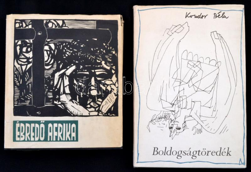 Kondor Béla: Boldogságtöredék. Versek és rajzok. Bp., 1971, Szépirodalmi. Vászonkötésben, papír védőborítóval, jó állapotban.; Ébredő Afrika. Néger költők antológiája. Szerk.: Bella György. Bp., 1961, Magvető. Vászonkötésben, papír védőborítóval, jó állapotban.