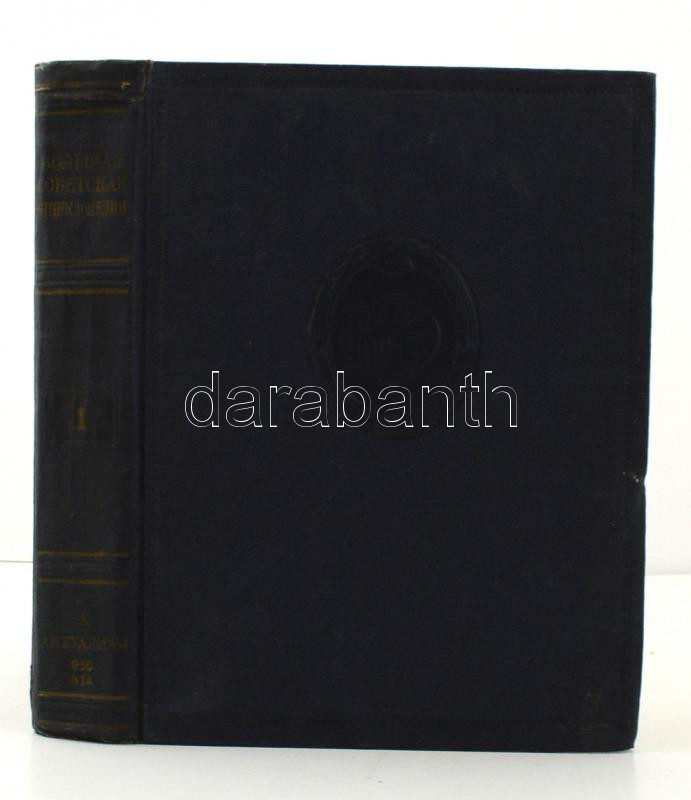Nagy szovjet enciklopédia. Főszerk.: Vavilov, Szergej - Vvegyenszkij, Borisz. 2. kiad. 1-50. köt. Moszkva, 1949-1957, a Nagy Szovjet Enciklopédia Kiadóbizottsága. Orosz nyelven, a 33., a 43. és a 46. köt. hiányzik. 1-49. köt.: szócikkek, 50. köt.: a Szovjetunió. Kortörténeti dokumentum, egyes szócikkek (pl. Lavrentyij Berija) utólag cenzúrázva. Számos színes térképpel és illusztrációval. Vászonkötésben, néhány kötet gerince kissé kopott, egyébként jó állapotban. + A Nagy Szovjet Enciklopédia évkönyve. Szerk.: Vvegyenszkij, Borisz. Moszkva, 1957, a Nagy Szovjet Enciklopédia Kiadóbizottsága. Vászonkötésben, jó állapotban. / Great Soviet Encyclopedia. Chief ed.: Vavilov, Sergey - Vvedenskiy, Boris. 2nd ed. Vol. 1-50. Moscow, 1949-1957, Publishing Committee of the Great Soviet Encyclopedia. In Russian, vols 33, 43 and 46 are missing. Vol. 1-49.: articles, vol. 50.: the Soviet Union. A testament of the era, some of the articles (like that of Lavrentiy Beriya) were later censored and replaced. With many coloured maps and illustrations. Cloth binding, some of the volumes' spines are slightly worn out, otherwise in good condition. + The Yearbook of the Great Soviet Encyclopedia. Ed.: Vvedenskiy, Boris. Moscow, 1957, Publishing Committee of the Great Soviet Encyclopedia. Cloth binding, in good condition.