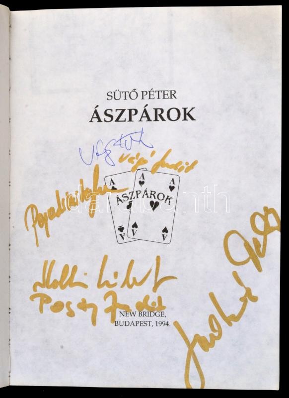 Sütő Péter: Ászpárok. Bp., 1994, New Bridge. Ismert emberek (Vágó Istv... https://www.darabanth.com/de/283-Fernauktion/283.0/Bucher/Bucher-Sonstige-Raritaten~500002/Suto-Peter-Aszparok-Bp-1994-New-Bridge-Ismert-emberek-Vago-Istvan-Pogany-Judit-stb~II1467846