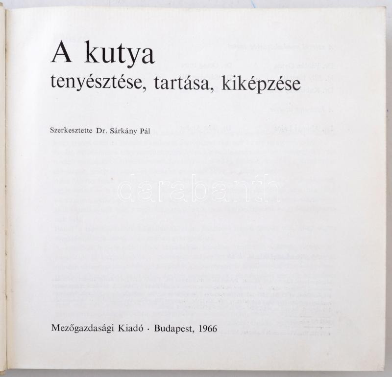 6db-os vegyes magyar kutyás témájú emlékérem és plakett, közte "Magyar Ebtenyésztők Országos Egyesülete" érem füllel, mellszalag nélkül; "Magyarfajta Kutyákat Tenyésztők Egyesülete" ezüstözött Br érem füllel + Dr. Sárkány Pál (szerk.): A kutya tenyésztése, tartása, kiképzése. Budapest, Mezőgazdasági Kiadó, 1966. használt állapotban T:2
