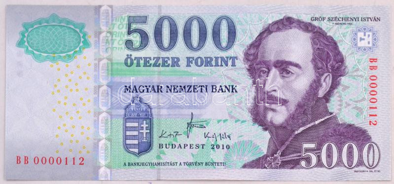 2010. 5000Ft "BB 0000112" alacsony sorszám T:I https://www.darabanth.com/de/283-Fernauktion/283.0/Numismatik/Ungarische-Banknoten~300022/2010-5000Ft-BB-0000112-alacsony-sorszam-TI~II1471237