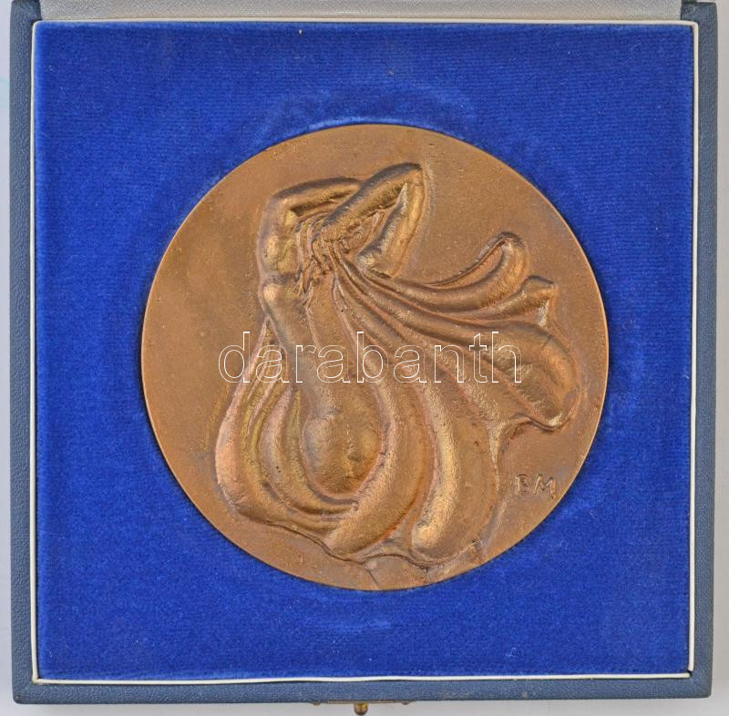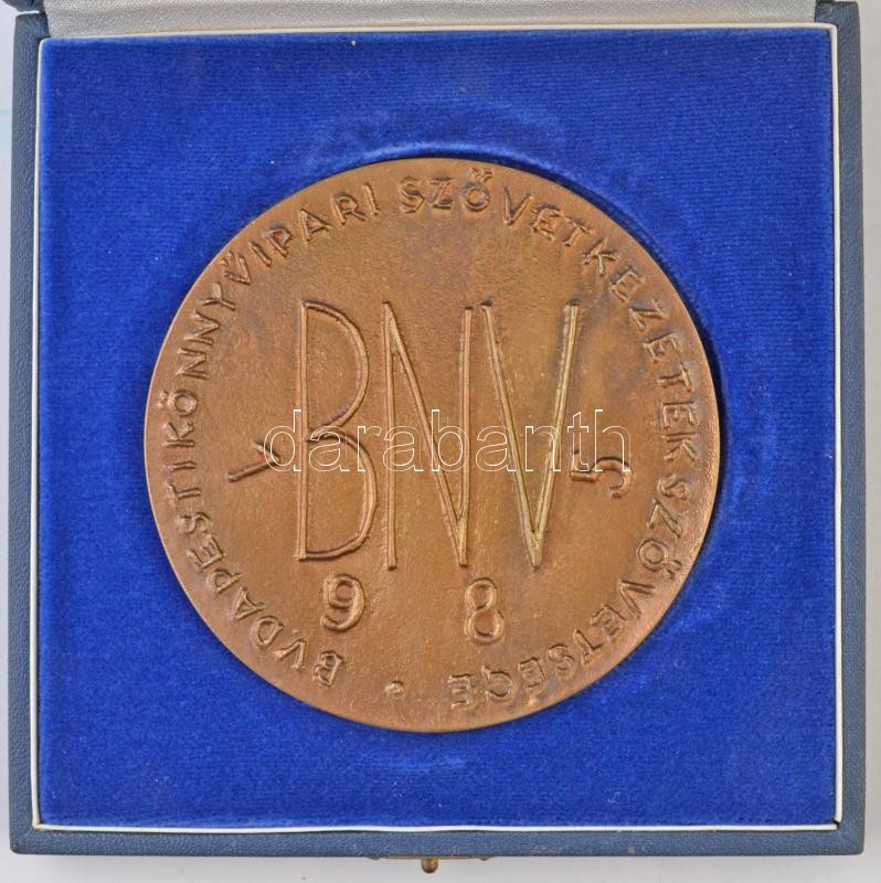 Beschreibung: Borsos Miklós (1906-1990) 1985. "Budapesti Könnyűipari Szövetkezetek Szövetsége" Br plakett, eredeti dísztokban (98mm) T:2