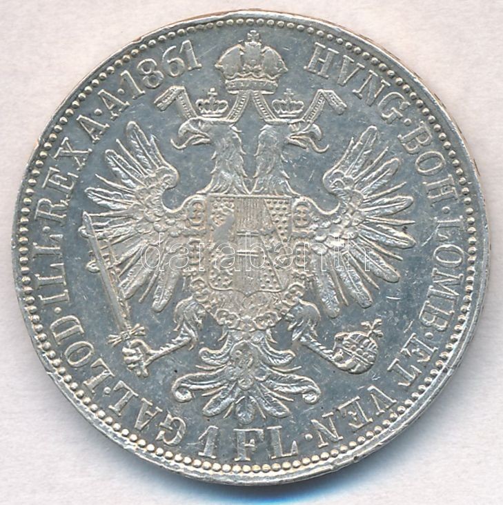 Aust... https://www.darabanth.com/de/283-Fernauktion/283.0/Numismatik/Weltweit-Munzen~300013/Ausztria-1861A-1Fl-Ag-Ferenc-Jozsef-T1-2-kis-ph---Austria-1861A-1-Florin-Ag-Franz-Joseph-C~II1468303