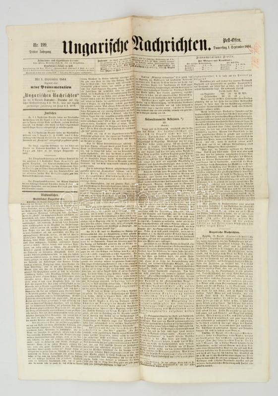 1864 Az Ungarische Nachrichten III. évfolyamának 199. száma https://www.darabanth.com/de/284-Fernauktion/284.0/Andere-Sammelgebiete/Drucksachen~27/1864-Az-Ungarische-Nachrichten-III-evfolyamanak-199-szama~II1474868