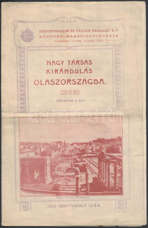 1904 Nagy társas kirándulás Olaszországba, az Idegenforgalmi és Utazás... https://www.darabanth.com/de/284-Fernauktion/284.0/Andere-Sammelgebiete/Drucksachen~27/1904-Nagy-tarsas-kirandulas-Olaszorszagba-az-Idegenforgalmi-es-Utazasi-Vallalat-Rt-Kozpont~II1478348