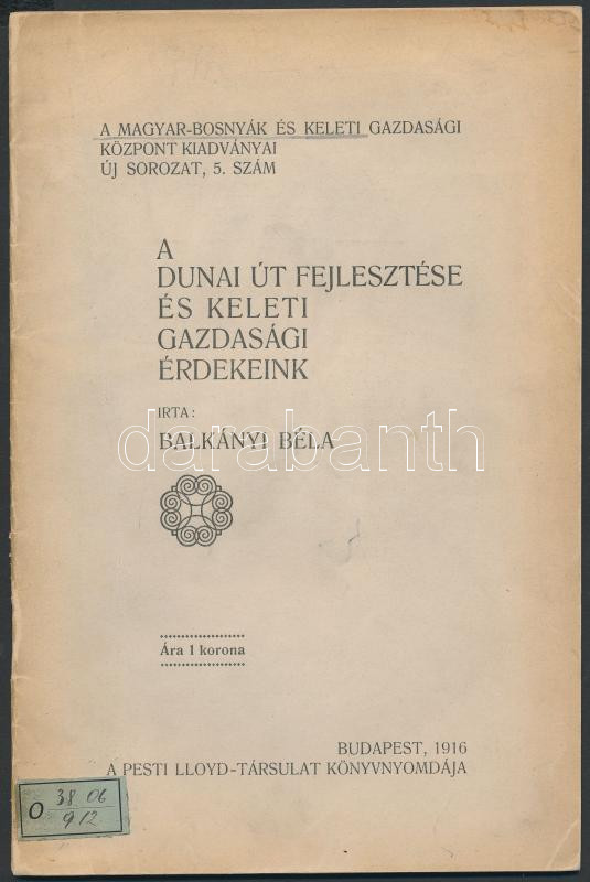 1916 Bp., Balkányi Béla: A dunai út fejlesztése és keleti gazdasági ér... https://www.darabanth.com/de/284-Fernauktion/284.0/Andere-Sammelgebiete/Drucksachen~27/1916-Bp-Balkanyi-Bela-A-dunai-ut-fejlesztese-es-keleti-gazdasagi-erdekeink-A-Magyar-Bosny~II1479170
