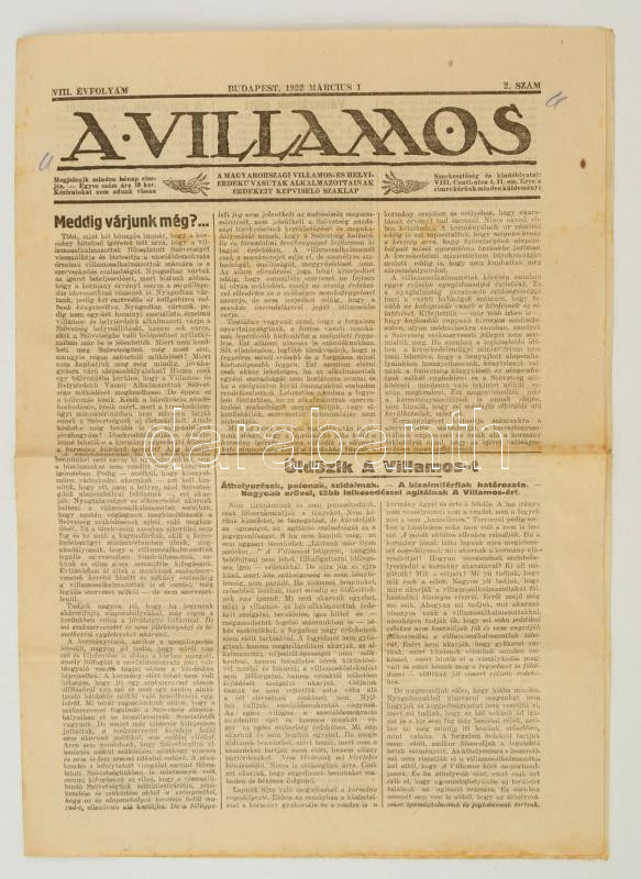 1922 Bp., A Villamos, A Magyarországi Villamos- és HElyiérdekű Vasutak... https://www.darabanth.com/de/284-Fernauktion/284.0/Andere-Sammelgebiete/Drucksachen~27/1922-Bp-A-Villamos-A-Magyarorszagi-Villamos-es-HElyierdeku-Vasutak-Alkalmazottainak-erdekei~II1474901